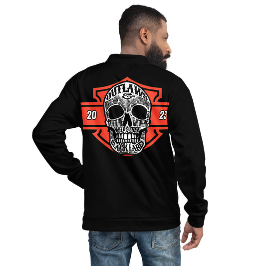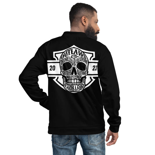 Black/White Bar & Shield Skull Face Bomber Jacket