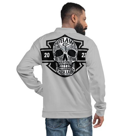Grey/Black Bar & Shield Skull Face Bomber Jacket